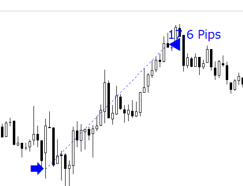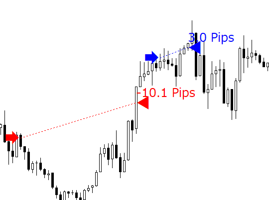 決済のマークの上側にpips数が表示できます。
