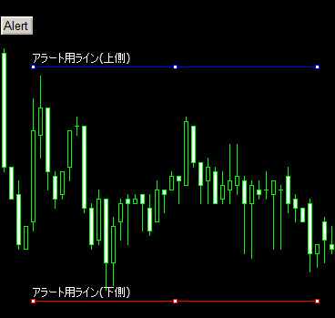 [Alert]ボタンを押すと上ブレイク、下ブレイク用の2本のラインが作成されます。
