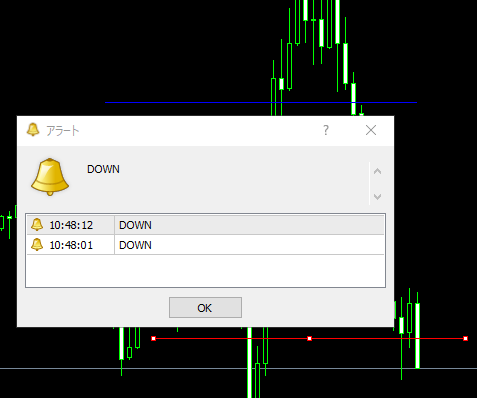 MT4の仕様でアラートのテキストに日本語を使用すると履歴部分では文字化けします。