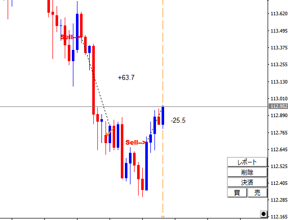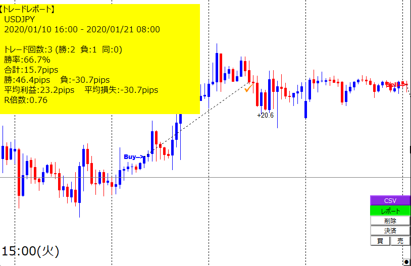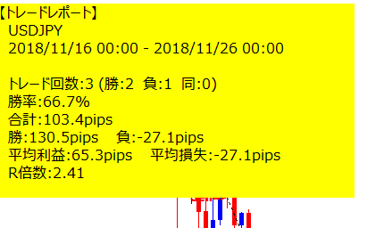 トレード回数や勝率など現在表示されているローソク足までのトレード結果が表示できます。
