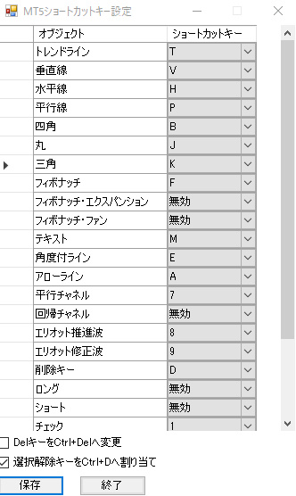 アプリを起動するとタスクトレイに常駐し、MT5にトレンドライン等のショートカットキーを割り当てることが出来ます。
