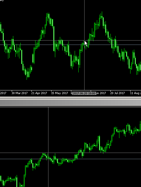 MT5で表示しているチャート全てにクロスヘア(十字線)を表示、同期するインジケーターです。
